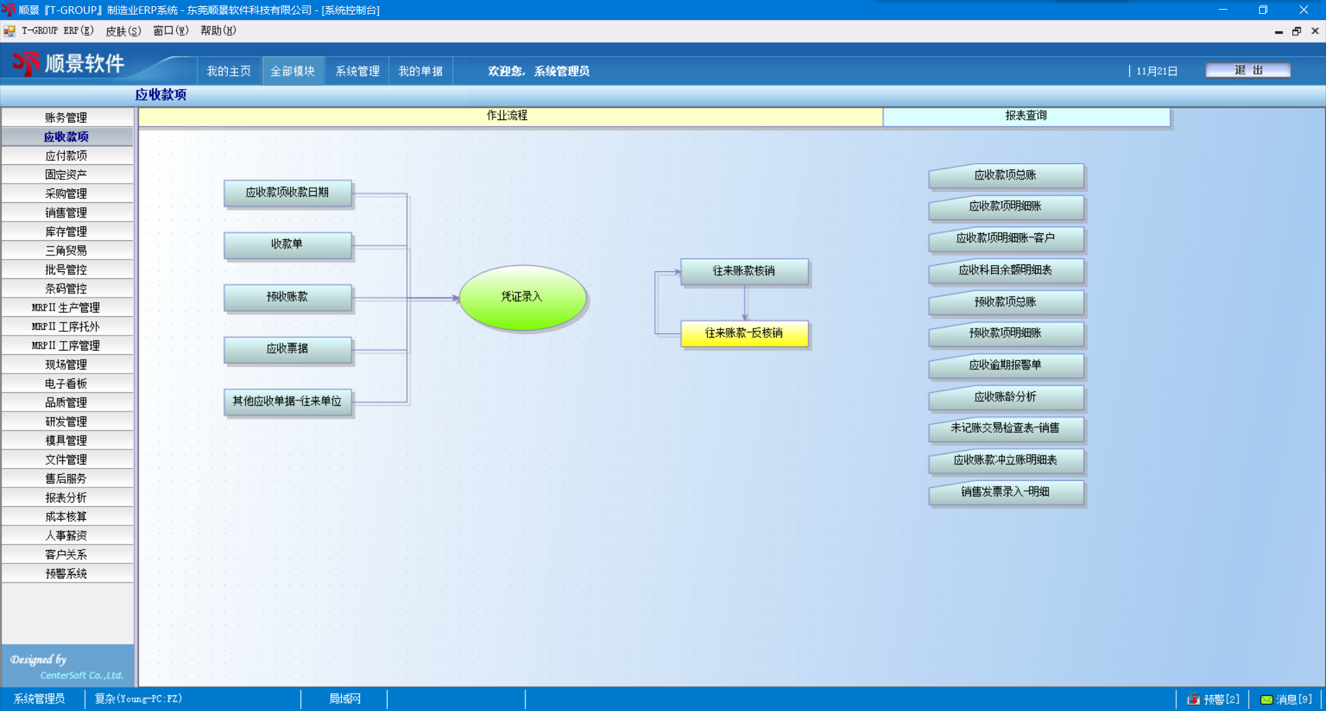 9.  随时查询和打印客户应收余额及进行帐龄分析。以利及时收回货款,降低呆帐发生;